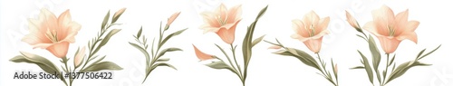 © abdul, Fototapeta premium Delicate Pastel Lilies Against a White Background