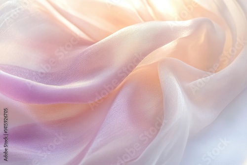© Anjali, Obraz premium Delicate pastel pink and peach silk fabric with soft, flowing drapes and gentle light.