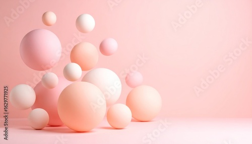 © Kotak, Fototapeta premium Delicate Pastel Spheres Floating in a Coral Gradient, Ethereal and Dreamlike