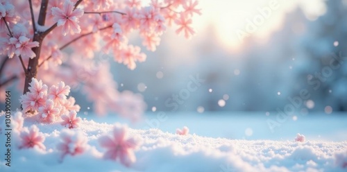 Obraz premium Delicate pastel winter scene; soft snowflakes drift on a serene background ,...