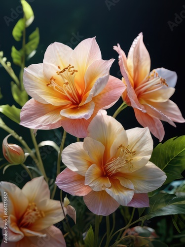 Naklejka premium Delicate Peach and Yellow Flowers.