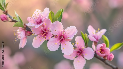 © AlfaSmart, Obraz premium Delicate peach blossoms in full bloom