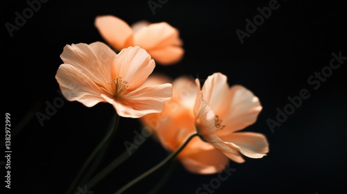 © mas, Fototapeta premium Delicate Peach Flowers Against Dark Background
