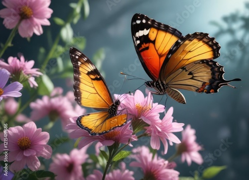 Fototapeta premium Delicate petals of the flower gently cradle a butterfly, animal , delicate,...