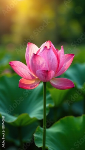 Fototapeta premium Delicate petals unfurl in gentle morning light, garden, foliage, lotus
