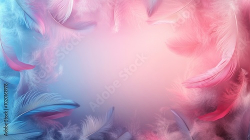 Obraz premium Delicate Pink and Blue Feathers Forming a Frame