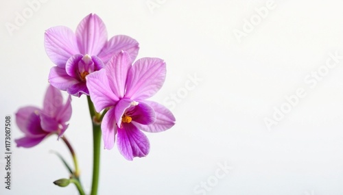 © Sathaporn Buarabut, Obraz premium Delicate pink and purple bell-shaped flowers with blotches against a white background, flowers of the month, blossom