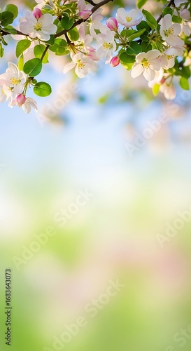 © Rehana, Obraz premium Delicate Pink and White Spring Blossoms on a Branch with Soft Bokeh flowers