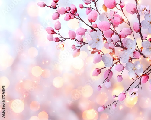 © Ai DreamscapesTH, Fototapeta premium Delicate Pink and White Spring Blossoms on Glowing Background Floral Springtime Image