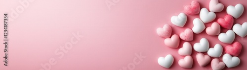 Fototapeta premium Delicate Pink Backdrop with White and Pink Hearts for Valentine’s Day or...
