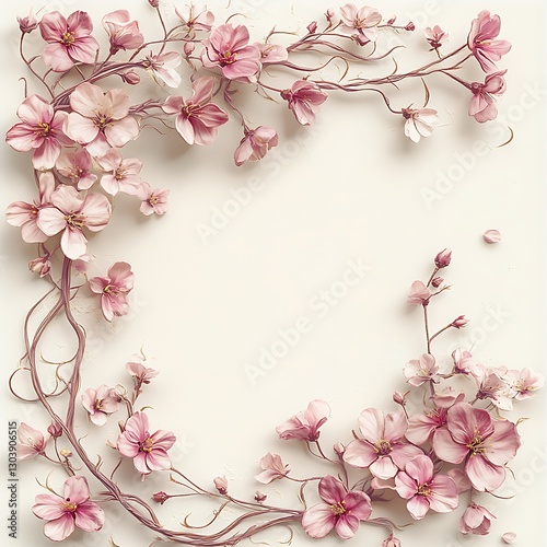 © Fatoniyah, Fototapeta premium Delicate Pink Blossom Frame, Elegant Floral Design