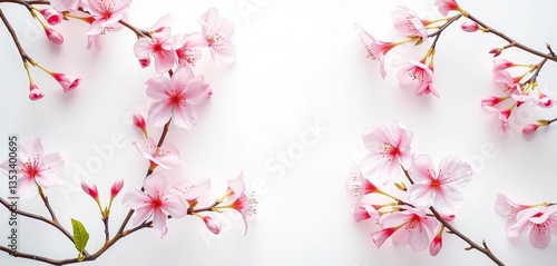 © Tanapong, Fototapeta premium Delicate pink blossom frame, isolated on white , summer, pink flowers