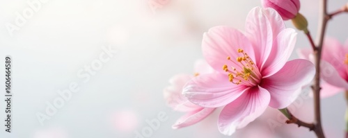 Fototapeta premium Delicate pink blossom, pristine white backdrop Elegant floral detail ,...