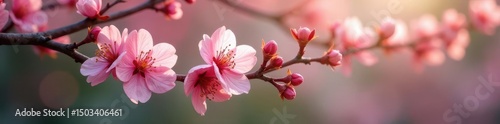 © Rainyphoto, Fototapeta premium Delicate pink blossom unfolds in serene garden nook , serene, nature, corner