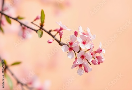 © DITSARAPHAN, Obraz premium Delicate pink blossoms against a soft peach spring backdrop, outdoor, floral design