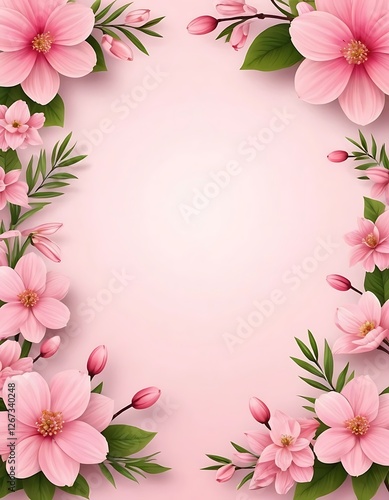 © Supardi, Fototapeta premium Delicate pink blossoms border on a soft pastel background creating a frame