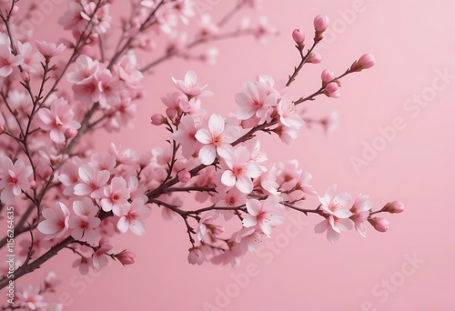 © Brother Stocks, Fototapeta premium Delicate Pink Blossoms Branching Out Against Soft Pink Background