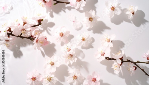 Fototapeta premium Delicate Pink Blossoms Floating on Water Spring Floral Background.