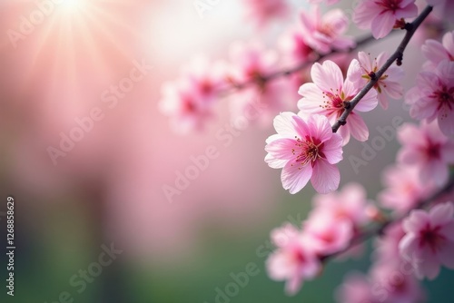 © tpadobestock, Fototapeta premium Delicate pink blossoms frame a blooming tree, spring border , pink tree, design