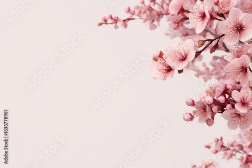 © favor, Naklejka premium Delicate pink blossoms frame a light-pastel background