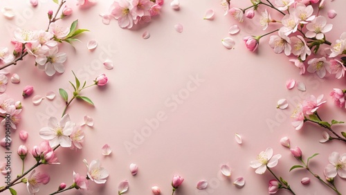 Naklejka premium Delicate Pink Blossoms Frame a Soft Pastel Background Perfect for Springtime...