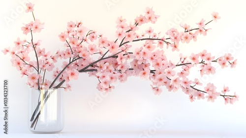 Fototapeta premium Delicate Pink Blossoms in a Vase - Minimalist Floral Arrangement