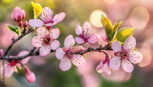 Obraz premium Delicate pink blossoms in spring sunlight