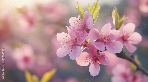 Fototapeta premium Delicate Pink Blossoms in the Gentle Sunlight