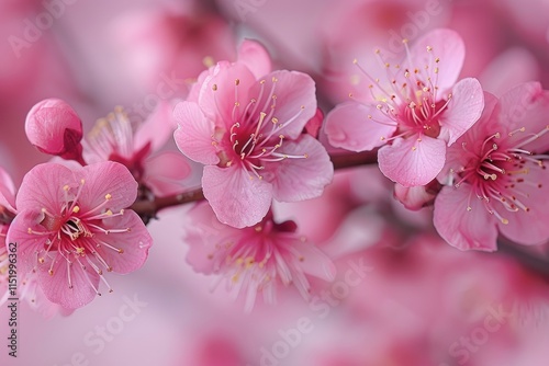 Fototapeta premium Delicate Pink Blossoms on a Branch