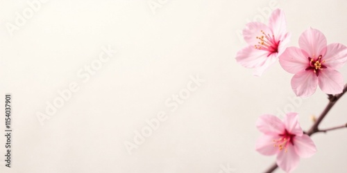 © vattana, Naklejka premium Delicate Pink Blossoms on a Branch Against a White Background, a Symbol of Springtime Beauty and Renewal