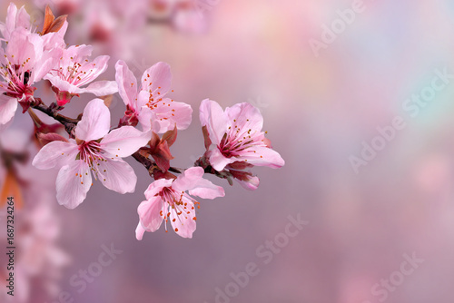 © Tohamina, Obraz premium Delicate pink blossoms on a branch soft pastel background springtime nature beauty
