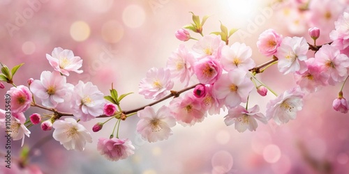 Fototapeta premium Delicate Pink Blossoms on a Branch with a Softly Blurred Background of Pink...