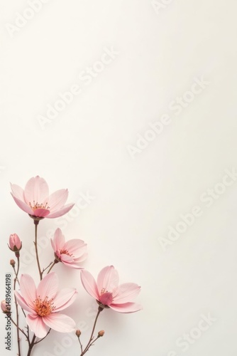Fototapeta premium Delicate Pink Blossoms on a Pristine White Background, a Perfect Floral...