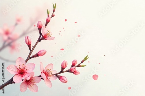 © Mali, Fototapeta premium Delicate Pink Blossoms on Branch with Falling Petals, a Symbol of Springtime Renewal and Natural Beauty