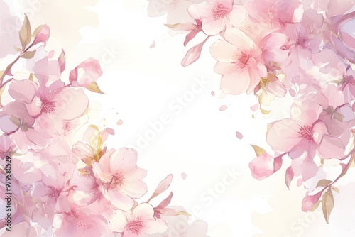 © Rifki Fachrudin, Naklejka premium Delicate Pink Blossoms Watercolor Illustration