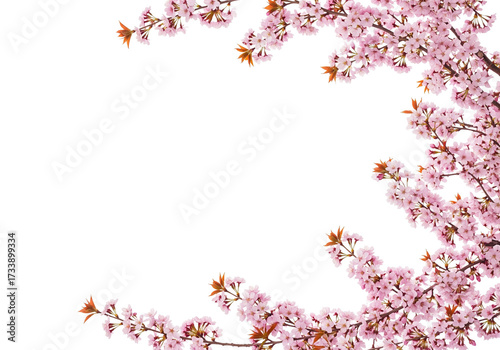 © Wassana, Fototapeta premium Delicate Pink Cherry Blossom Branches Framing a Black Background with Copy Space