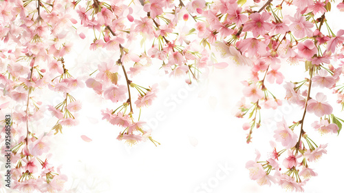 © Tanayut, Fototapeta premium Delicate pink cherry blossom branches with soft background and gentle falling petals