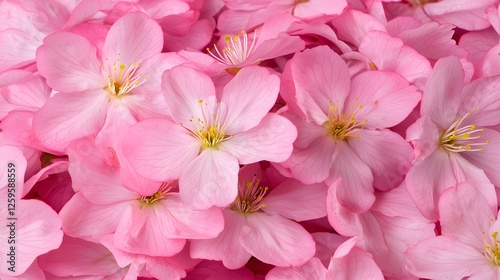 Fototapeta premium Delicate Pink Cherry Blossom Petals Spread Across a Soft Surface