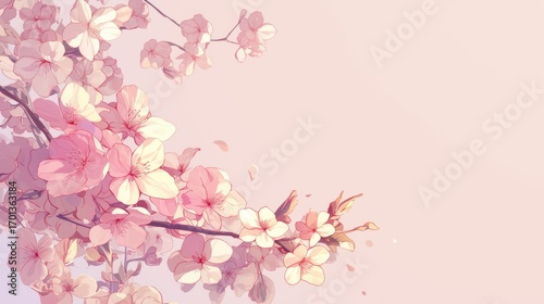 Fototapeta premium Delicate Pink Cherry Blossoms Against a Soft Pastel Background