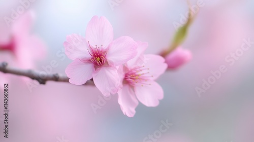 Fototapeta premium Delicate pink cherry blossoms bloom gracefully, showcasing nature's beauty...