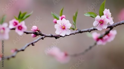 © bocheng, Obraz premium Delicate Pink Cherry Blossoms Blooming Along a Serene Branch with Softest Focus
