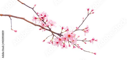 Fototapeta premium Delicate pink cherry blossoms, branches gracefully arranged against a pure white background, pretty, minimal
