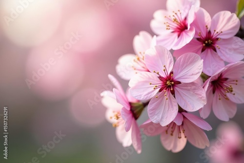 Fototapeta premium Delicate pink cherry blossoms, full bloom, soft focus, romantic, nature...