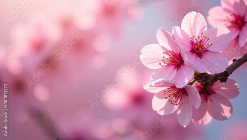 Fototapeta premium Delicate pink cherry blossoms, full bloom, soft petals , botanical, petals