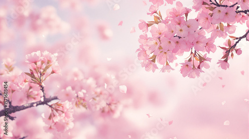 © Ikhsan, Obraz premium Delicate pink cherry blossoms in soft focus.