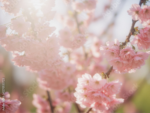 Fototapeta premium Delicate pink cherry blossoms in sunlight