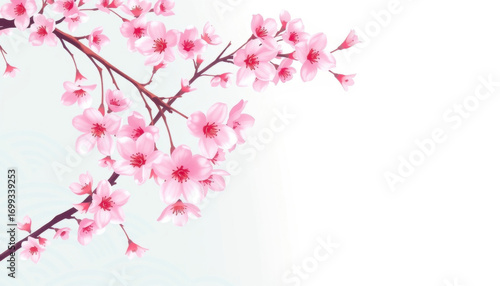 © GREENMUR, Fototapeta premium Delicate pink cherry blossoms on a branch bloom