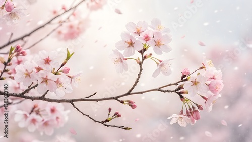 © Masud010, Obraz premium Delicate Pink Cherry Blossoms on Branches: Springtime Bloom