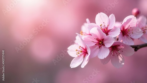 Fototapeta premium Delicate pink cherry blossoms, soft focus, bokeh background, bloom, blossom...