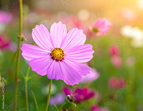 © Surat, Fototapeta premium Delicate pink cosmos flower in a field